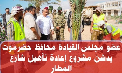 دشن عضو مجلس القيادة الرئاسي محافظ حضرموت الأستاذ سالم أحمد الخنبشي، مشروع إعادة تأهيل شارع مطار الريان، في إطار جهود السلطة المحلية لتحسين البنية التحتية والارتقاء بالمظهر الحضري للمدن والمديريات بالمحافظة.